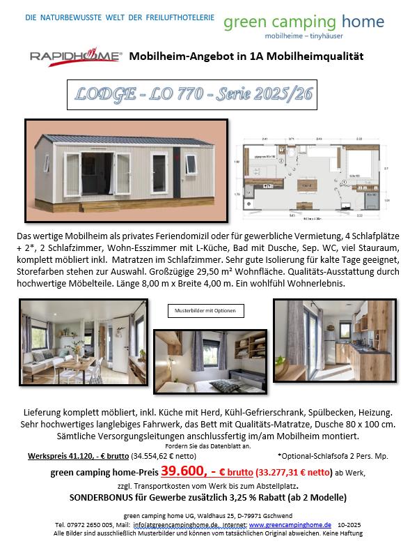 Durch Bestellrückname von Mengenkunden oder Werksgegebenheiten, gibt es immer wieder Überschneidungen bei den Mobilheimkapazitäten die für bestimmte Modelle einen zeitlichen Sonderpreis zulassen. Da die Auslastung des Werkes immer in Zeit-Erstellungsphasen vorgenommen wird, bietet das Werk den Kunden an, hierbei in den Bestellungsprozess einzugreifen um manche Modelle für die Füllung der Herstellungsabläufe aufzufüllen.